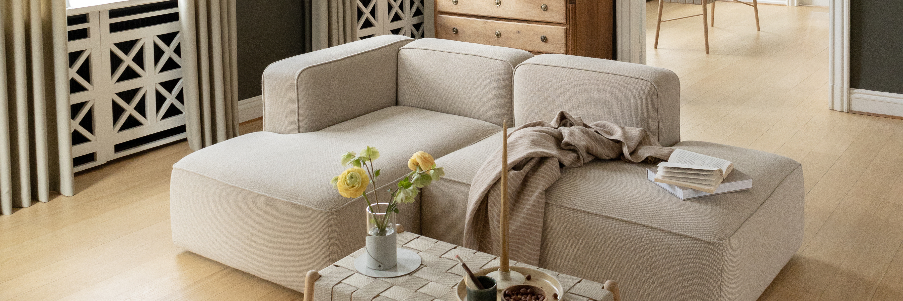 Das BASECAMP-Modulsofa kann so gebaut werden, dass es genau zu deinem Zuhause und deinen Bedürfnissen passt. Wir sind der Meinung, dass dies die beste Grundlage für ein Sofa ist, das dich viele Jahre begleitet. Mit dem BASECAMP-Modulsofa wirst du erleben, dass die Erinnerungen länger halten und die Gemütlichkeit sofort einzieht. Wenn du etwas Extra-Gemütlichkeit wünschst, baue dein Sofa mit einer oder zwei Chaiselongues oder füge einen Pouf hinzu. Das elegante Sofa kann mit vielen weichen Kissen und Decken gestylt werden, sodass du deinen ganz eigenen Look kreieren kannst.