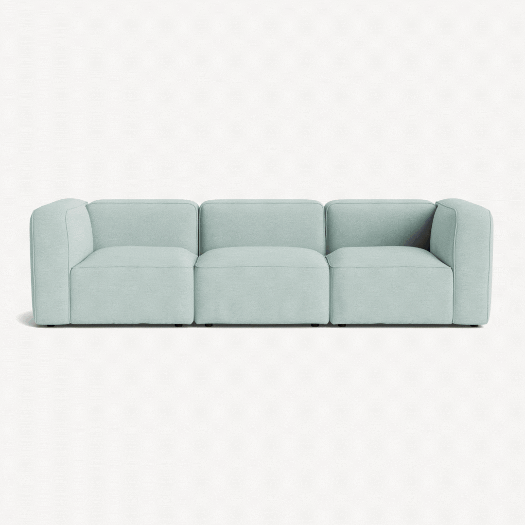 Wie soll das Sofa zusammengestellt werden? Möchtest du selbst bauen, oder passt eine Standardzusammenstellung in dein Zuhause? Mit dem Modulbaukasten kannst du bequem verschiedene Lösungen online ausprobieren. Wähle aus 17 verschiedenen Modulen.