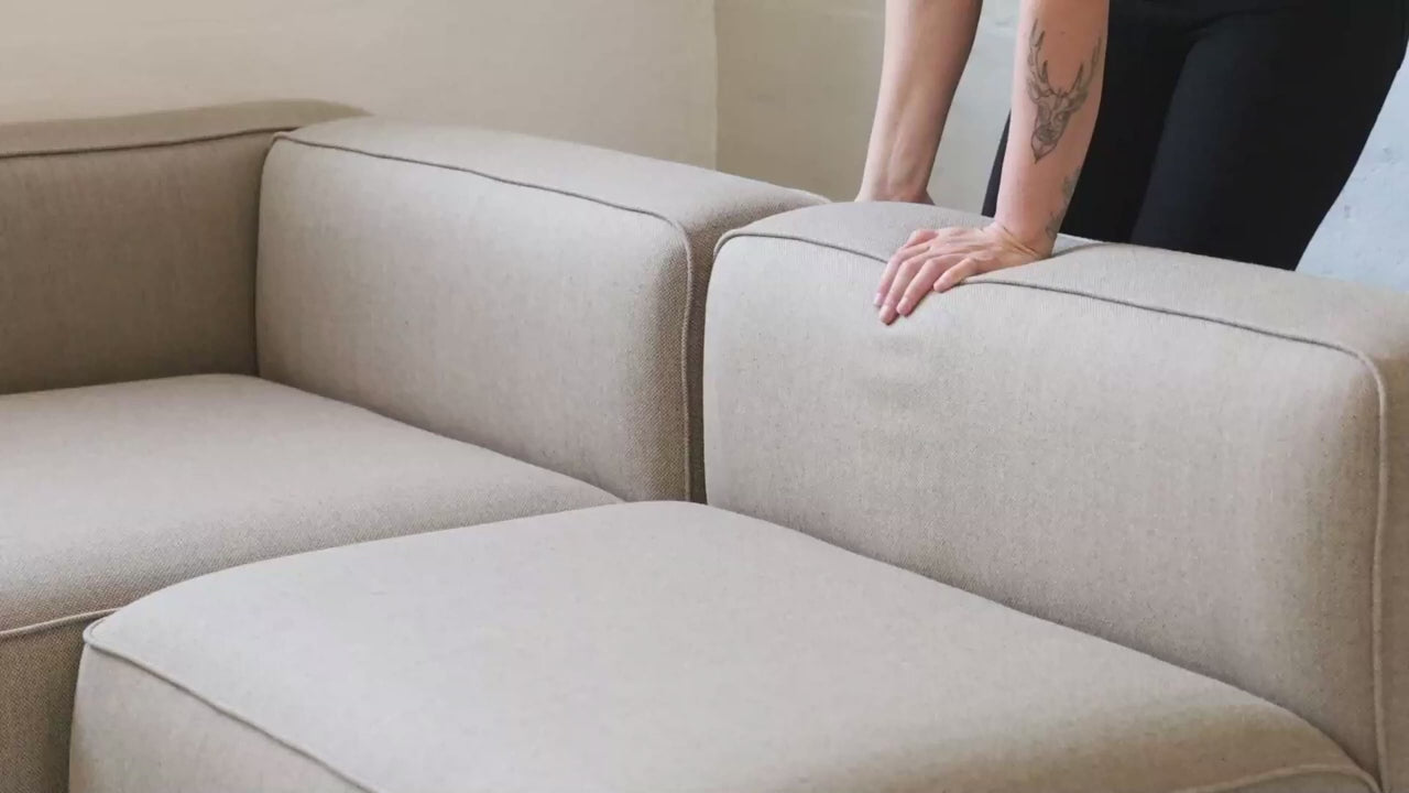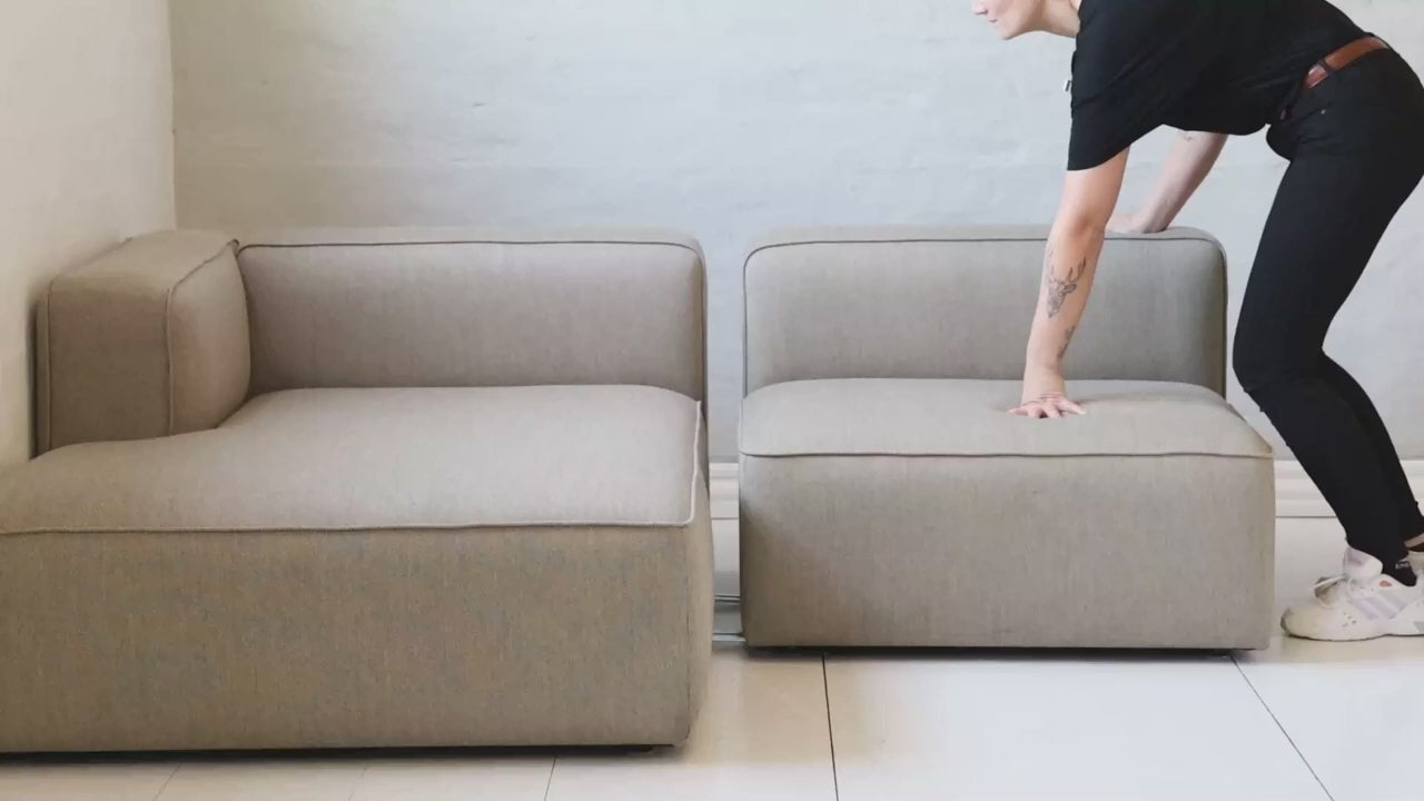 Was wie ein schiefes Sofa aussieht, lässt sich leicht korrigieren, indem du die Polsterung und die Kedernaht des Moduls einfach wieder in Position massierst. Sieh dir das kleine Video hier als Beispiel an
