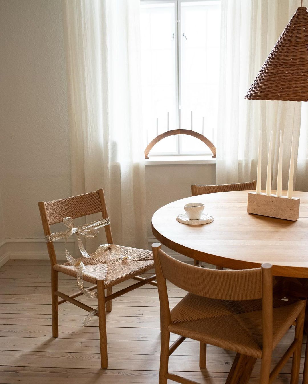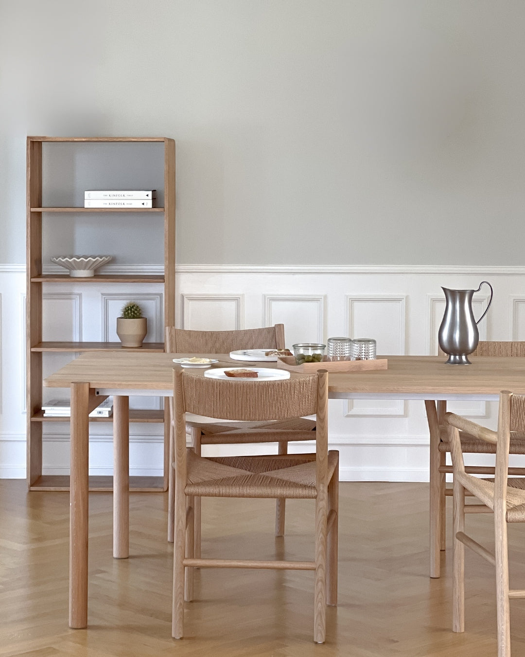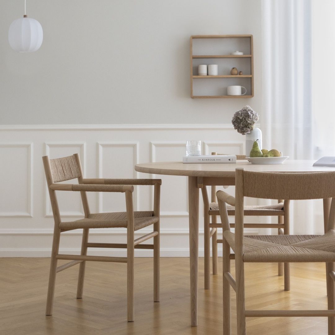 CORD ist vielseitig und sowohl mit als auch ohne Armlehne erhältlich, was zahlreiche Einrichtungsmöglichkeiten bietet. Der Stuhl eignet sich perfekt als Esszimmerstuhl, aber auch für Büro, Flur oder Schlafzimmer. Am Esstisch können Stühle mit und ohne Armlehne kombiniert werden, um ein abwechslungsreiches Gesamtbild zu schaffen. Das helle Geflecht und das natürliche Eichenholz passen in jedes Ambiente.