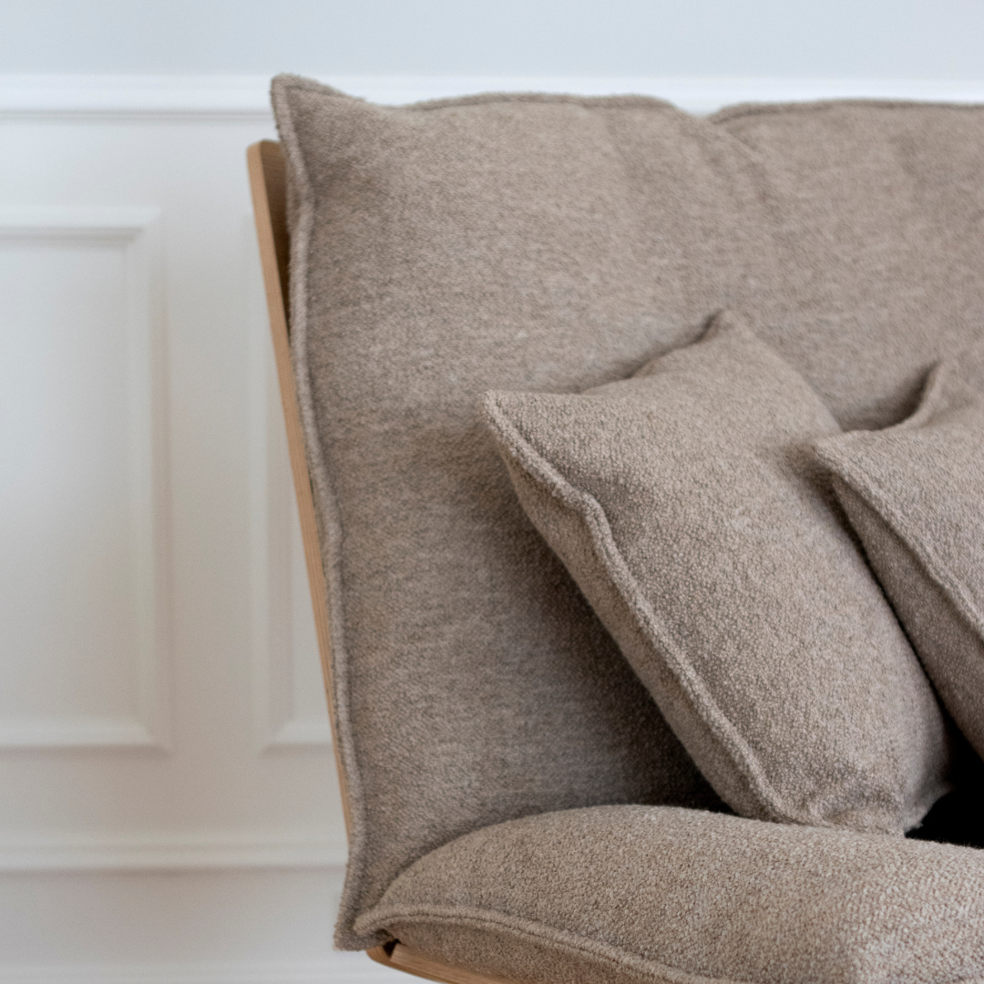 Mit der Wahl des PRIMETIME und entsprechender Pflege erhältst du einen Sessel, der viele Jahre hält – vielleicht sogar mehrere Generationen. Die Daunenschicht umhüllt dich wie eine Decke, und die Kissen lassen sich leicht aufschütteln und klopfen, sodass sie ihre Form behalten und keinen Staub ansammeln. Wählst du einen Stoffbezug, kann das Kissen gewendet werden. Bei Flecken kannst du diese vorsichtig abwischen oder den Bezug abnehmen und schonend reinigen. Das Holz benötigt keine Pflege; es ist mit einer dünnen Schicht matter Lackierung versehen und kann einfach mit einem feuchten Tuch abgewischt werden. Möchtest du deinen PRIMETIME-Sessel im Laufe der Zeit erneuern, können Kissen und Bezüge nach Bedarf ausgetauscht werden.
