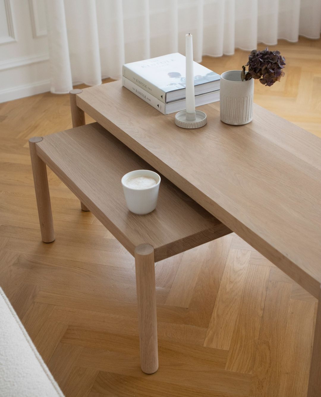 TAMMI ist eine Serie schöner und funktionaler Couchtische. Das Design ist schlicht, zeigt aber durch das massive Eichenholz einen individuellen Charakter. Das einfache Design und das verantwortungsvoll beschaffte Holz machen TAMMI perfekt für das nordische Zuhause, wo hohe Qualität und zeitloses Design im Mittelpunkt stehen.